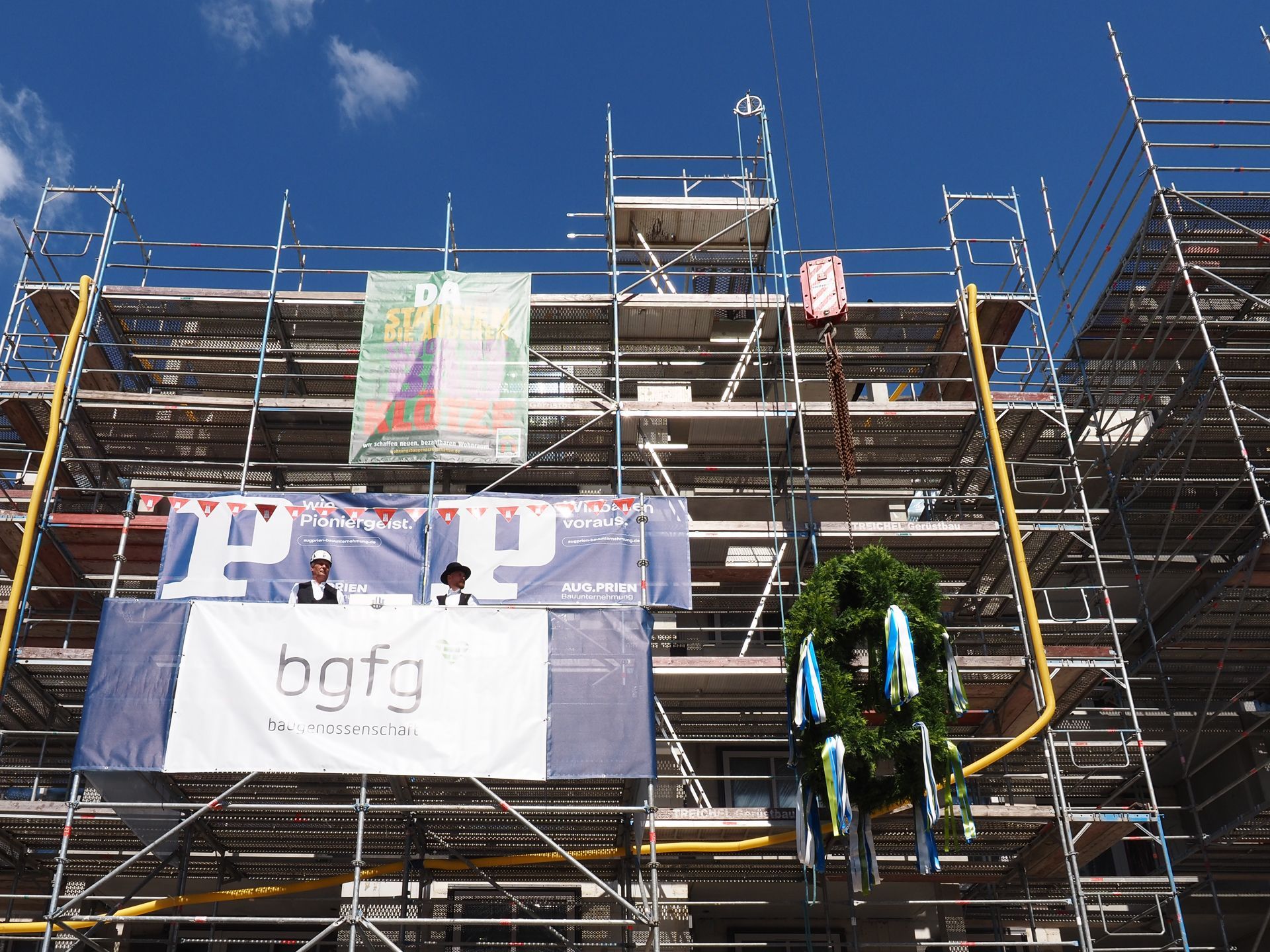 „Damit biegen wir bei einem der größten Bauvorhaben der bgfg auf die Zielgerade ein“, sagte Peter Kay, Vorstand der Genossenschaft, beim Richtfest. „So tragen wir zur sozialen Stabilisierung und Aufwertung eines Stadtteils bei, der nur zehn Minuten vom Hauptbahnhof entfernt liegt. Die bgfg beweist damit auch in schwierigen Zeiten ihre soziale Verantwortung.“